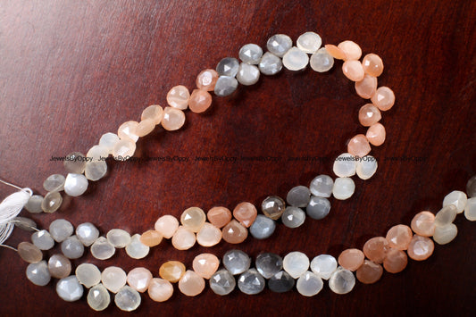 Natural Multi-Moonstone Faceted Pear Drop, Heart Shape Teardrop Jewelry Making Gemstone Beads 1 full strand