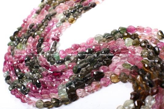 Natural Multi Watermelon Tourmaline Faceted Heart Shape Teardrop Gemstone 5.5-6mm Beads 7”, 14" Strand