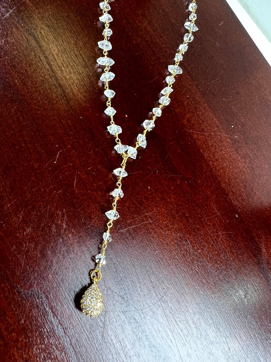 Herkimer Diamond 4x5.5-6.5mm Raw Beaded Wire Wrap with CZ diamond water drop Y Necklace Sparkly Clear AAA High Quality Herkimer Diamond