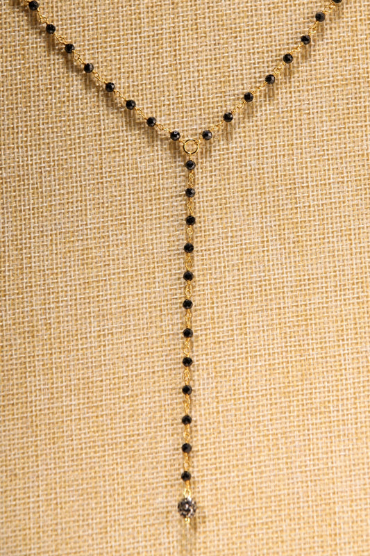 Genuine Black Spinel Micro Faceted 3mm Diamond Cut Choker with 3" , 4" Y Gold Necklace, Gold Necklace, prom, Layering, Elegant Gift
