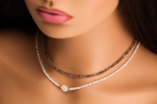 Natural Moonstone Faceted 4.5-5mm Rondelle with 15mm moonstone dime Front Choker layering gold Necklace Birthday, yoga,healing