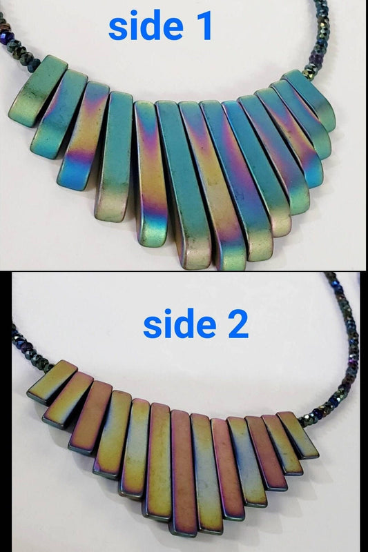 Titanium Hematite matte Graduated Stick double side wearable 2 different shaded color in both side, silver Necklace, 14 to 24" choice.