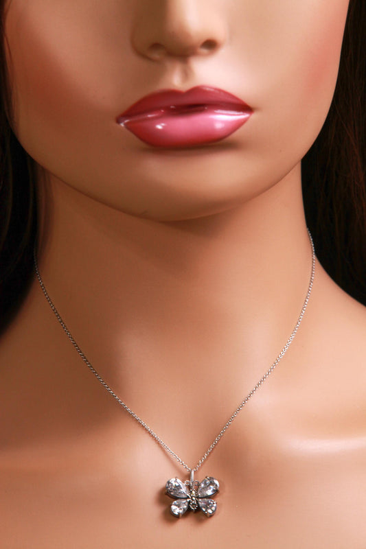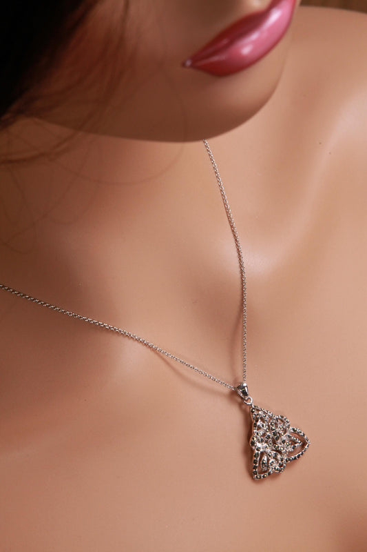 Marcasite 925 Sterling CZ Diamond Butterfly Pendant 16x20mm Necklace with Rhodium Non Tarnish Sterling Silver Chain, Vintage, Antique gift