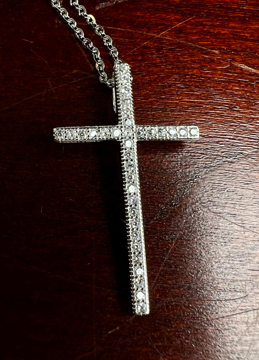 925 Sterling Silver CZ. Diamond setting Cross Pendant Necklace 925 stamped