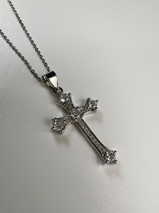 925 Sterling Silver CZ. Diamond prong setting Cross Pendant Necklace 925 stamped