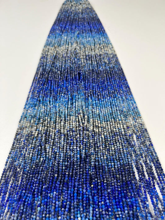 Ombre Lapis Lazuli 2mm Faceted Round Beads, 15.5" Strand