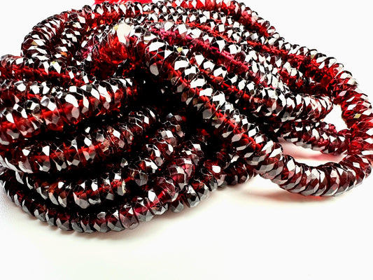 Natural Mozambique Garnet Faceted Heishi Wheel 5-6mm Roundel Merlot red Rare Heavy Weight Gemstone Bead 6”,12” strand