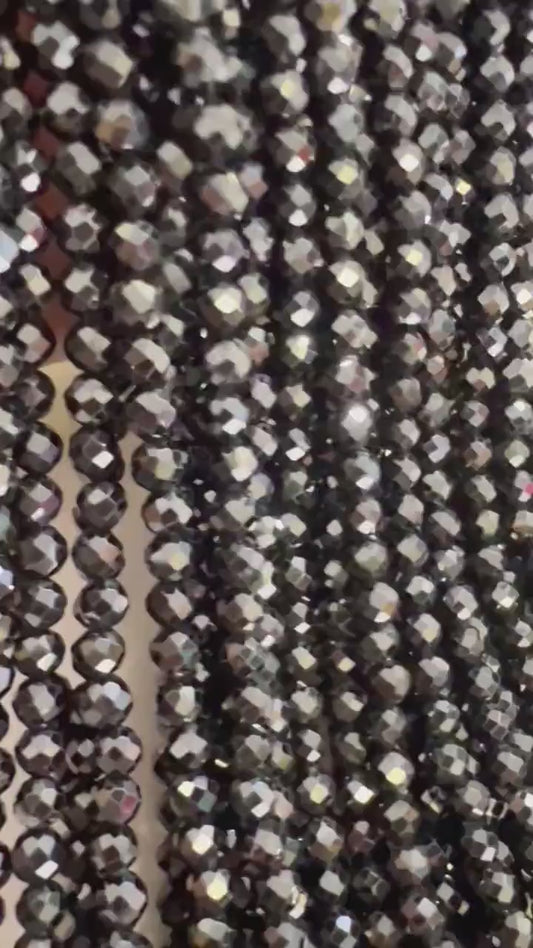 Natural Black Spinel 4mm Roundel micro faceted AAA quality Gemstone Beads, Jewelry Making 12" Strand, Single or Bulk