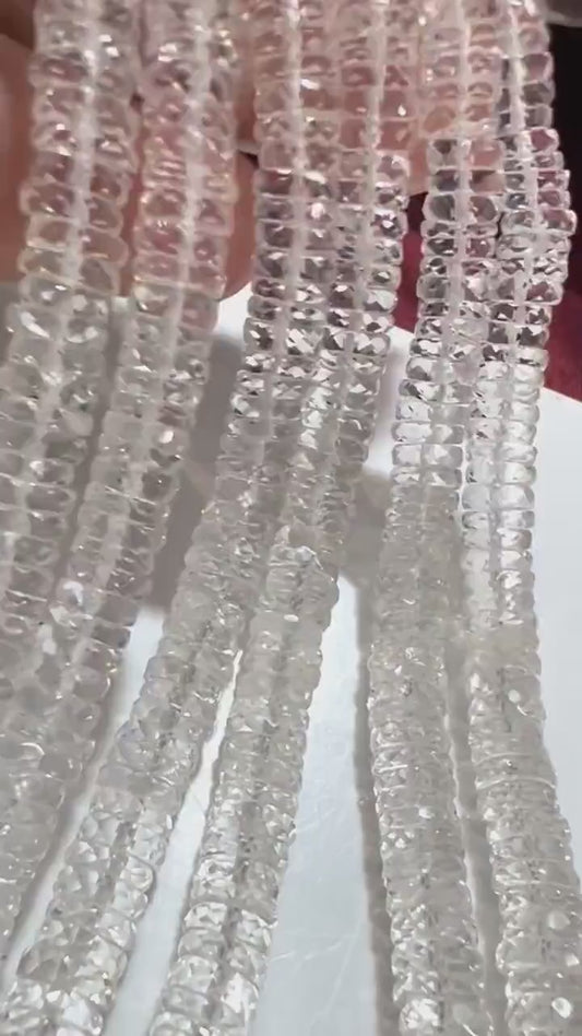 Natural Rock crystal Quartz Faceted heishi wheel tyre roundel micro cut AAA quality jewelry making bead 6.5-7mm in size 8” Strand