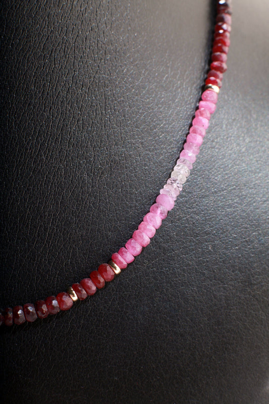 Natural AAA 3-3.5mm Ruby Ombre Shaded 14K Gold Filled Spacers & Clasp Necklace, July Birthstone, Mother's Day, Valentine, Precious Gift
