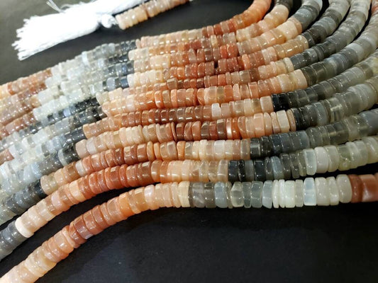 Natural multi Moonstone Heishe, shaded Gemstone brown smooth cut Heishe Moonstone Beads 6.5- 7mm DIY Jewelry Making, 8" Strand