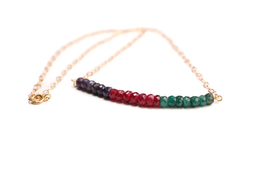Genuine Ruby Sapphire Emerald AAA Faceted 4mm Roundel in 14K Gold Filled or 925 Sterling Silver Bar Necklace, Gift For her, Birthstone