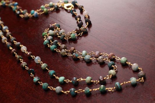 Natural Chrysocolla 4.5mm faceted roundel wire wrapped rosary gold chain Necklace