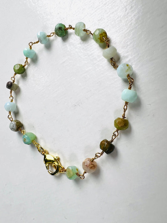 Natural Peruvian opal 5-6mm faceted roundel wire wrapped beaded gold bracelet
