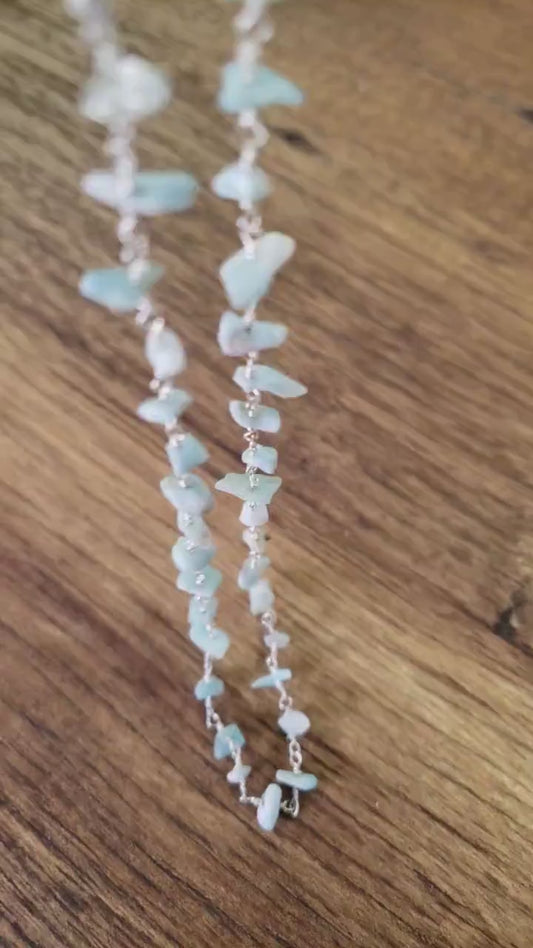 Natural Larimar raw nugget chips silver wire wrapped Gemstone Choker, Layering handmade Necklace Gift, Healing Gem