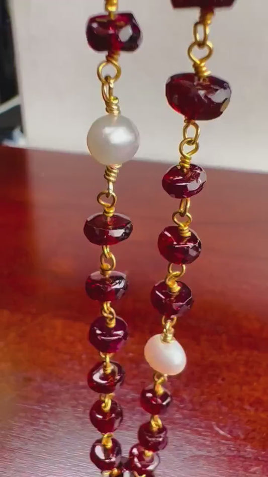 Mozambique Garnet 6mm AAA Roundel Choker wire wrapped handmade Necklace, Freshwater Pearl Spacer, 14k Goldfilled, January Birthstone
