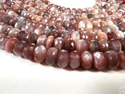 Natural Chocolate Moonstone Faceted Roundel 6-11mm bead . AAA quality bead for jewelry making 6” strand