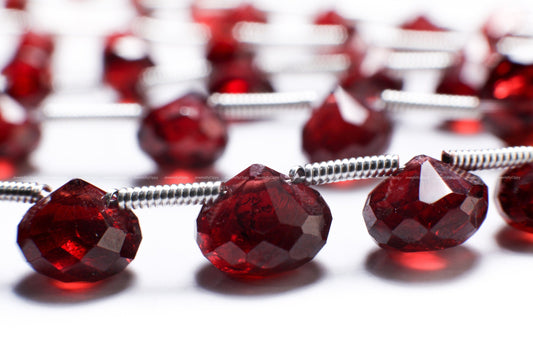 Mozambique Red Garnet Micro Faceted 6-7mm Heart Shape Pear Drop, Jewelry Making Rich Dark Red, January Birthstone Teardrop Beads