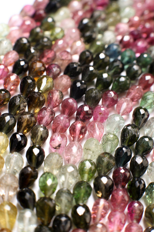 Natural Multi Watermelon Tourmaline Faceted Briolette 4-4.5x6-6.5mm Drop Shape Teardrop DIY Jewelry Making Gemstone Teardrop Beads