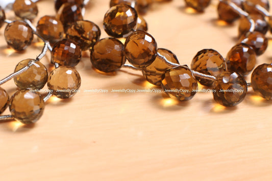Genuine Whisky Quartz, Cognac Quartz Faceted Dew Onion Shape Briolette 8.5-9.5mm Jewelry Making Gemstone Beads