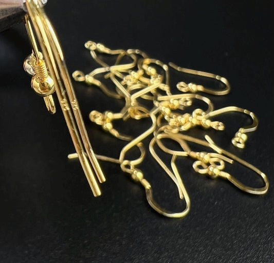 22k gold Vermeil over 925 Sterling Silver French Hook Ball and Coil earwire, earrings making findings, 925 stamped, 1 pair or bulk wholesale