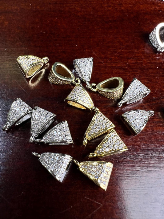 Cubic zirconia Sterling Silver CZ diamond Bail Heavy duty Pendant holder 7x11mm Bail, open jumupring bottom