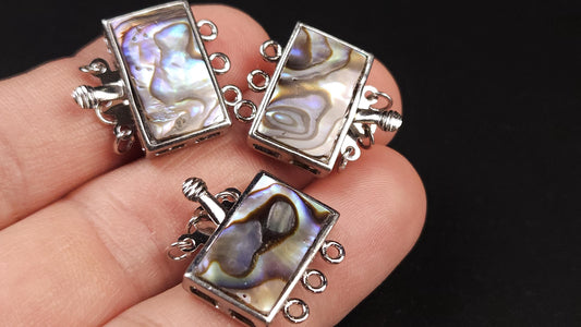 Natural Abalone Pua Shell 3 Loop Fancy Flower Clasp, blue green flash Jewelry Making Rhodium 3 line Necklace Bracelet clasp.