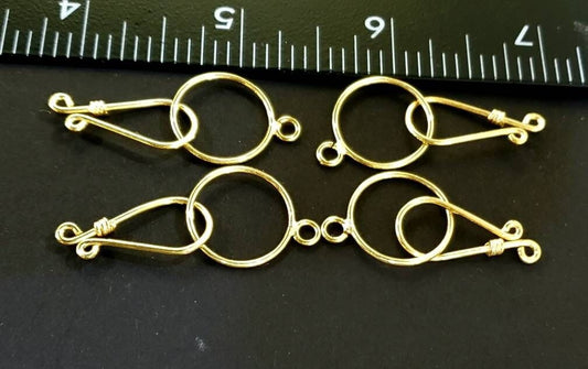 22K Gold Vermeil ,925 Sterling Silver hook and eye clasp, 16mm circle,23mm hook,vintage handmade hook clasp for jewelry making,1 set or bulk