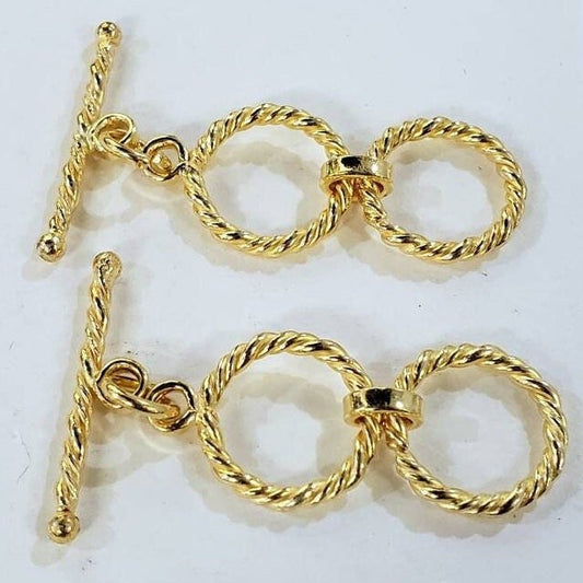 22K Gold Vermeil 925 Sterling Silver Bali Twisted Rope Toggle Clasp, 14mm Circle, Vintage Handmade Clasp, 1 set or Bulk