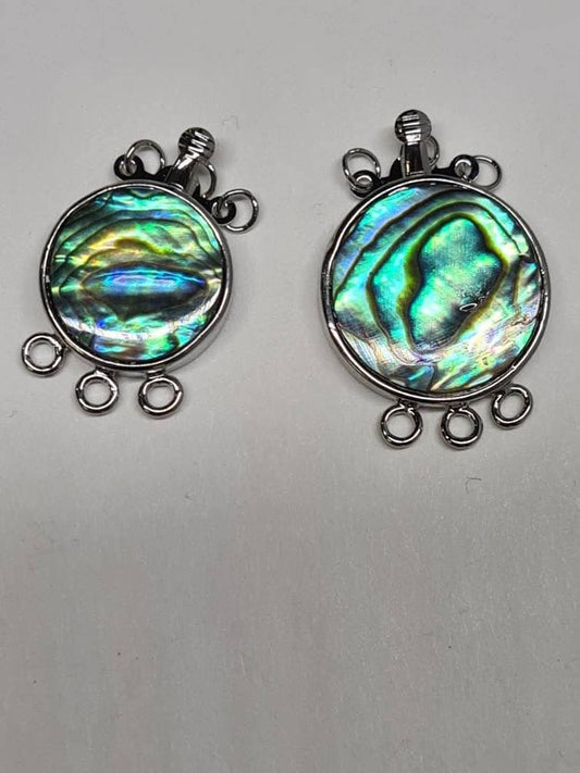 Abalony shell Inlaid 3 loop rhodium clasp 18mm & 21mm . Necklace bracelet jewelry making vintage clasp. 1 piece