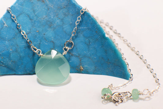 Aqua Chalcedony Faceted Heart Briolette Teardrop AAA Quality 13.5mm Cut Gems in 925 Sterling Silver Necklace valentines gift