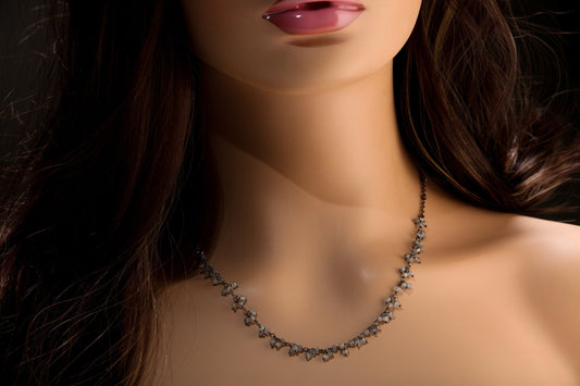 Labradorite Necklace & Earrings Set, Dangling Oxidized Silver Wire Wrap Faceted Pear Drop, Clusters in Gun Metal Leverback, Boho, Handmade