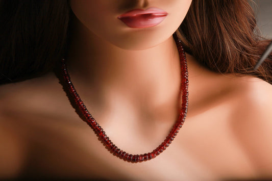 Genuine Garnet large AAA Faceted Rondelle Graduated 5-7mm Necklace with optional 3" Rhodium Extender Chain, January Birthstone