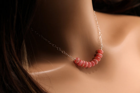 Genuine Argentina Rhodochrosite Pink Roundel 7-8mm Super Quality Necklaces in 925 Sterling Silver, Gift