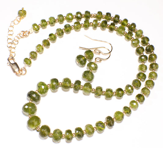 Natural Green Apatite 5.5-9mm Faceted Graduated Rondelle with 14K Gold Filled Spacers & Clasp Necklace,Earrings Jewelry Set Rare collection