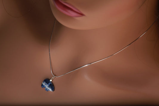 Sodalite Zuni Bear Earrings Necklace, Natural Brazilian Sodalite Zuni Bear Gemstone Necklace and Earrings Set Vintage Sterling Silver 16"