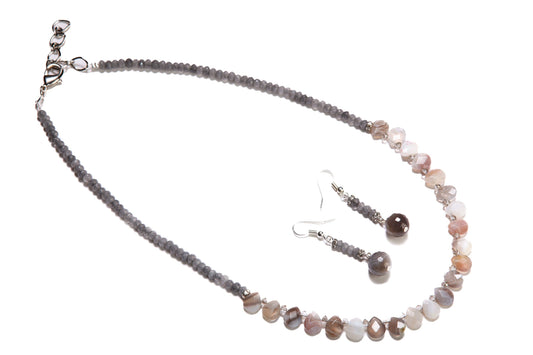 Natural AAA Botswana Agate Faceted Teardrop 18" Adjustable Necklace set with matching Earrings 10mm Botswana Silver Ear Wire