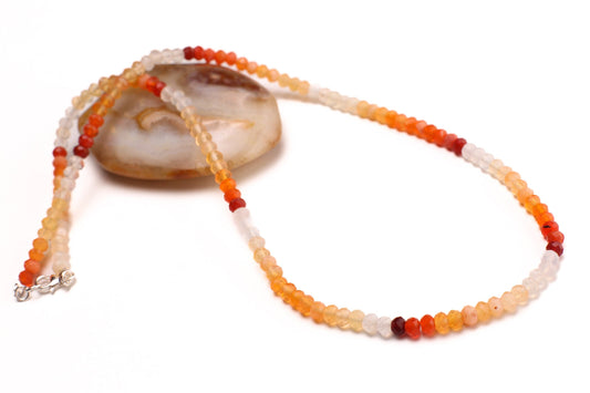 Mexican Fire Opal 3.5mm Faceted Orange Shaded Rondelle Necklace, AAA Quality Natural Mexican Opal Gemstone, 925 Sterling Silver, Gold Filled