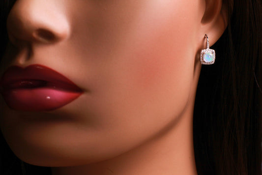 Ethiopian Fire Opal, Welo Opal with CZ Diamond Leverback Earrings in 925 Sterling Silver AAA Fiery Opal Elegant Earrings gift