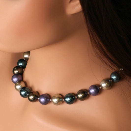 Multi South SeaShell Pearl 14mm Large High Luster Statement Necklace, Gift for Her
