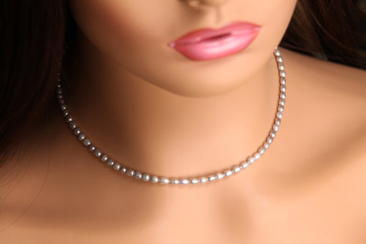 Natural Freshwater silver Gray Pearl 4x6mm Rice Oval AAA high luster pearl Necklace, Choker, Layering, Minimalist Natural Pearl Holiday Gift
