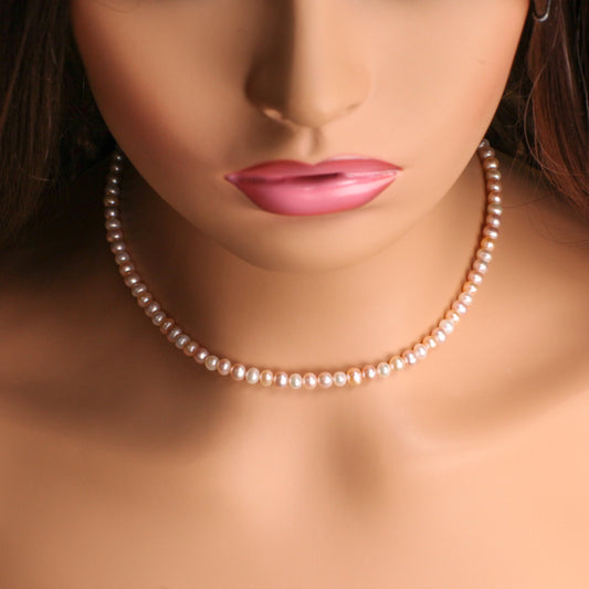Natural Freshwater Potato Pearl 2 Tone White, Peach Necklace AAA high luster pearl,Choker,Layering, Minimalist Natural Pearl Holiday Gift