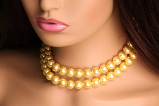 Golden Yellow South SeaShell Pearl 8,10,12mm High Luster Statement Necklace ball Clasp Necklace, Bridal, party wear