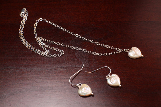 Natural Freshwater Heart shape Pearl White High Luster Pendant Necklace, Earrings Jewelry set in 925 Sterling Silver