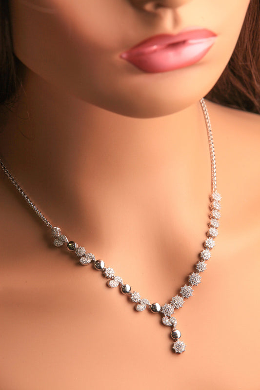 925 Sterling Silver CZ Diamond Flower setting Y necklace, bridal wedding necklace, 925 stamped. 18”