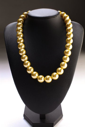 Golden Yellow South SeaShell Pearl 14mm Large High Luster Statement Necklace, Bridal, Gift for Her