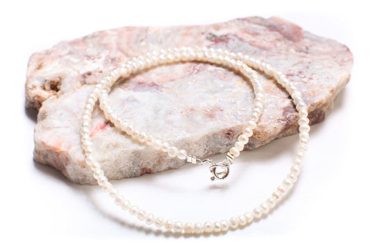 Pearl Necklace. Natural Freshwater Pearl AAA quality Seed Pearl roundel Silver Necklace, wedding Holiday Gift
