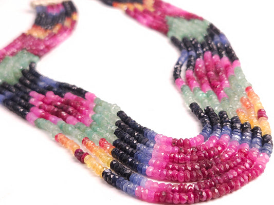 Natural Multi Sapphire 7 Line 3-4mm Graduated Faceted Roundel Gemstone 16.5" with Adjustable thread Necklace