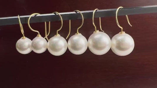 Half drilled White South Sea Shell Pearl earring 10,12,14mm Large High Luster Pearl Silver/Gold hook Earrings,Elegant Bridal