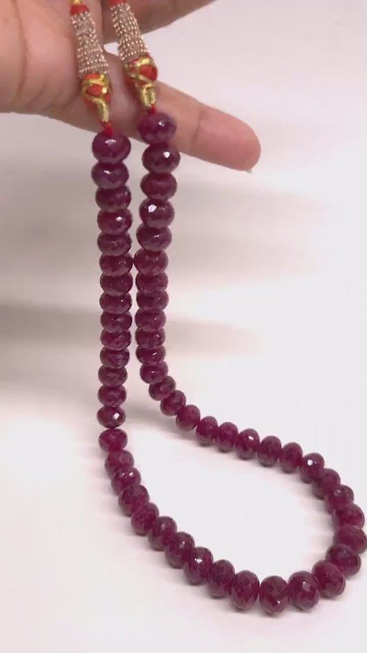 Genuine Faceted Ruby large Roundel rare Adjustable thread Necklace, Gift for her, 389 ct